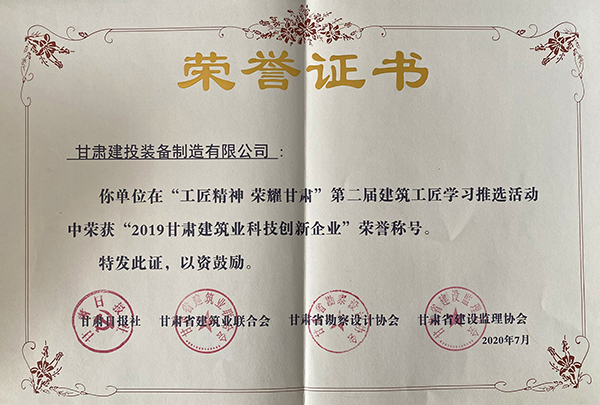 7月3日,“工匠精神 榮耀甘肅”第二屆“建筑工匠”學習推選活動暨甘肅建筑行業創新發展論壇在蘭州舉行。甘肅建投裝備公司榮獲“建筑行業科技創新企業”稱號。