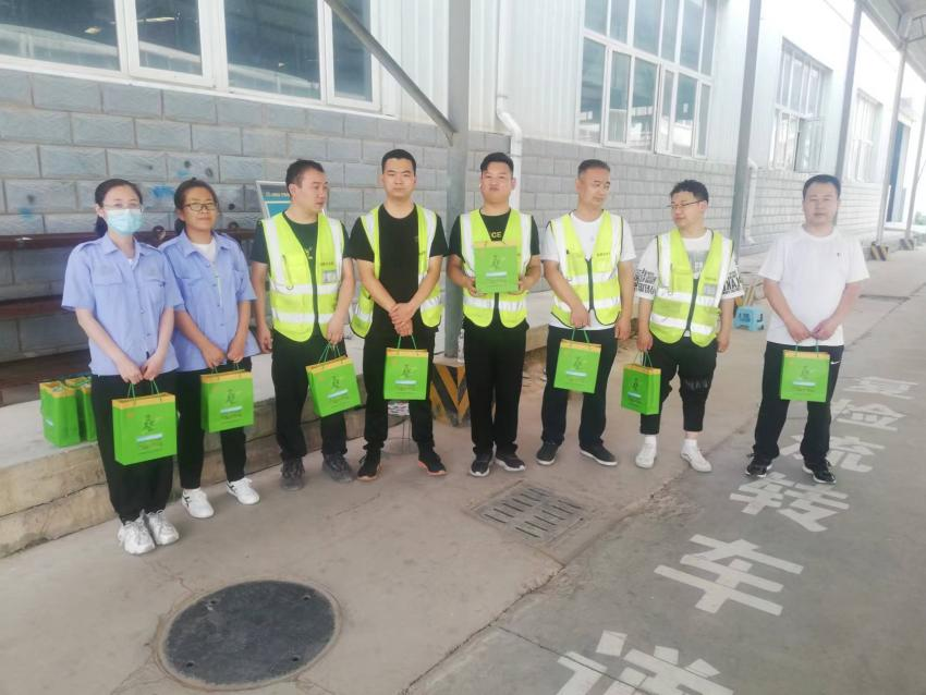 7月8日,格賽克公司黨支部書記向公司員工發放防暑降溫慰問品,為一線員工送上“清涼”。
